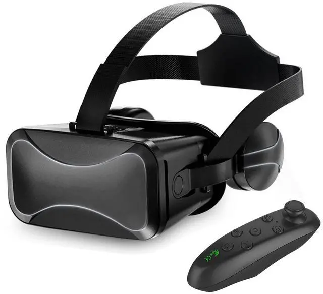 Specification: Product name: VR Headset with Remote VR Material: ABS + 42MM resin lens; Lens: Aspherical optical lens, high light transmittance; Video format: 3D; FOV: 100-120 degrees Focal length: adjustable; IPD: adjustable Colour: Black Mobile phone holder: 3.5-6 inches smartphone; Suitable for short sight: 0-600 Earphone: Speaker sensitivity: 112dB/mW Speaker impedance: 320 Frequency response range: 20-20000Hz Plug diameter: 3.5mm Headphone plug type: straight plug type Colour: Black Handle Wireless protocol Battery: R03 size 7 1.5V battery 2 (not included) Working current: 0.5-0.8mA Standby current: 0.5-1mA Colour: Black