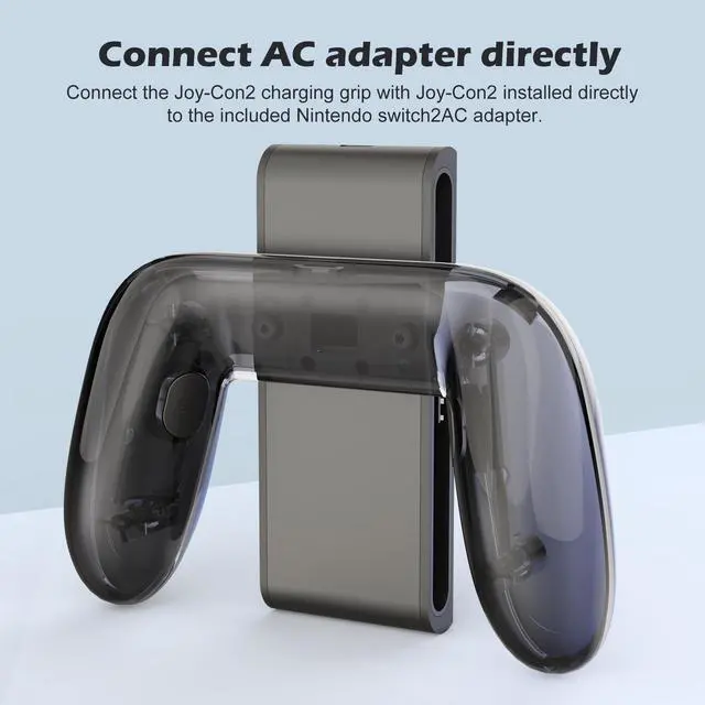 Connect AC adapter directlyConnect the Joy-Con2 charging grip with Joy-Con2 installed directlyto the included Nintendo switch2AC adapter.