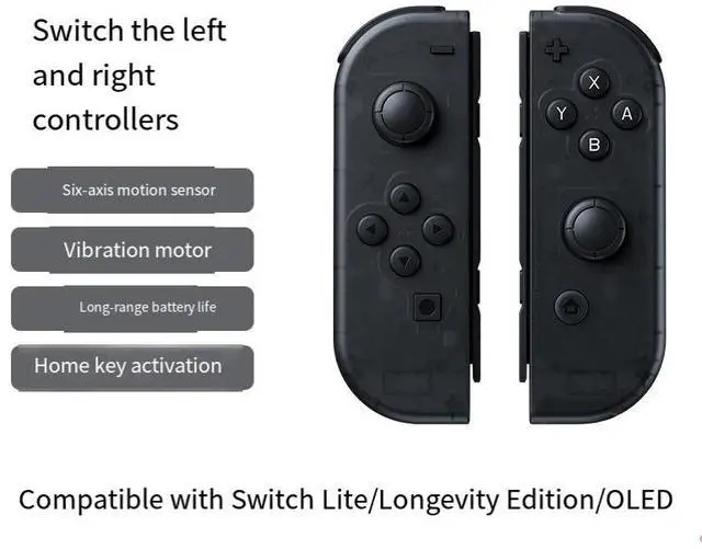 The left and right controllers of Switch, namely JoyCon controllers, support OLED wake-up and are compatible with fitness ring motion game controllers. Translucent black