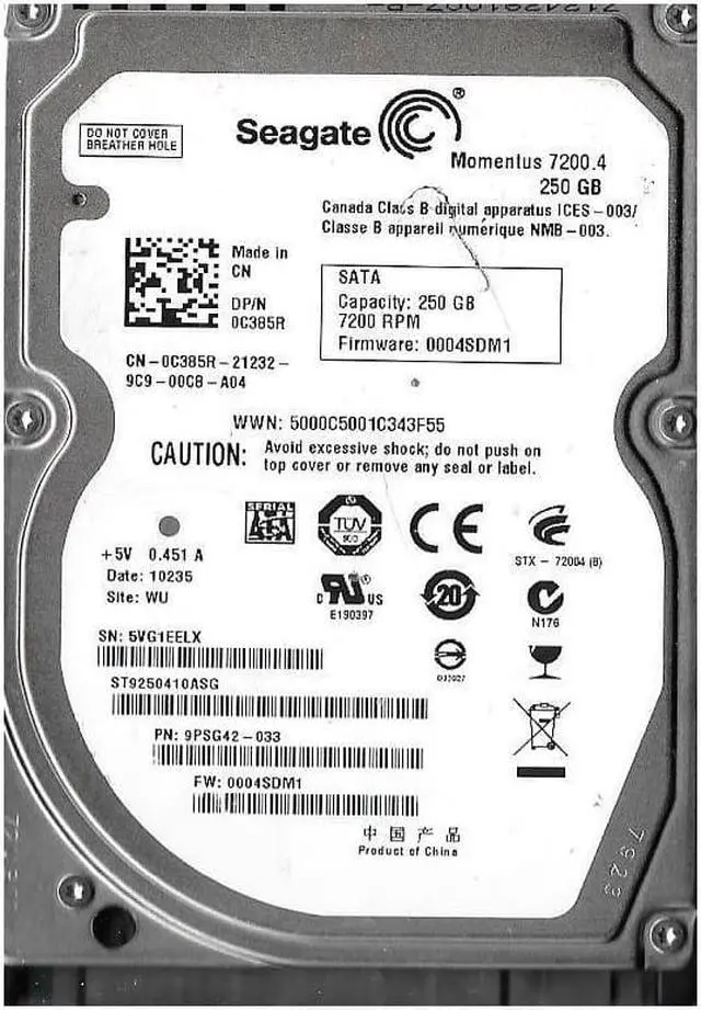 ST9250410ASG Hard DriveMarketing Information: The Seagate ST9250410ASG Momentus 7200.4 drive delivers the highest available capacity and performance in a laptop hard drive and draw only. 05 percent more power than a 5400-RPM laptop drive. Seagate also works hand in hand with major technology players to develop new platforms and interfaces for system builders. Unlike many competitors, Seagate takes a leadership role, as well as learning from our customers, to develop the future of storage and what it means to computing.