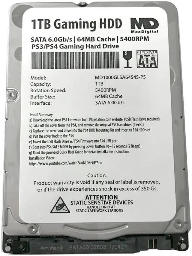MaxDigital 1TB 5400RPM 64MB Cache (7mm) SATA 6.0Gb/s 2.5" PS3/PS4 Gaming Hard Drive - 2 Year Warranty