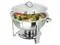 Constructed of lightweight and durable stainless steel, this chafing dish has a polished finish to add some shine and elegance to any occasion. Ideal for weddings, parties, large or small gatherings, this dish holds 5.3 Quarts and works great for a variety of dishes. Rounded lid helps retain heat and moisture, keeping your food warm and fresh for long periods of time. Stand features integrated carry handles for safe transport from spot to spot. This buffet style chafing dish is great for both indoor and outdoor use and will enhance the visual appeal of your favorite dishes!