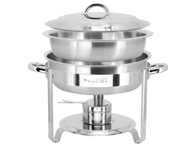 MegaChef 3.7 Quart Round Stainless Steel Professional Chafing Dish/Food Warmer/Buffet Server Serving Trays