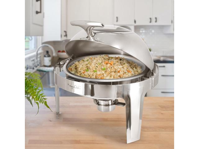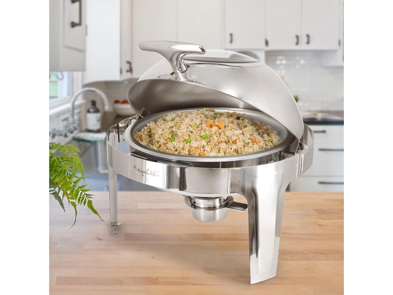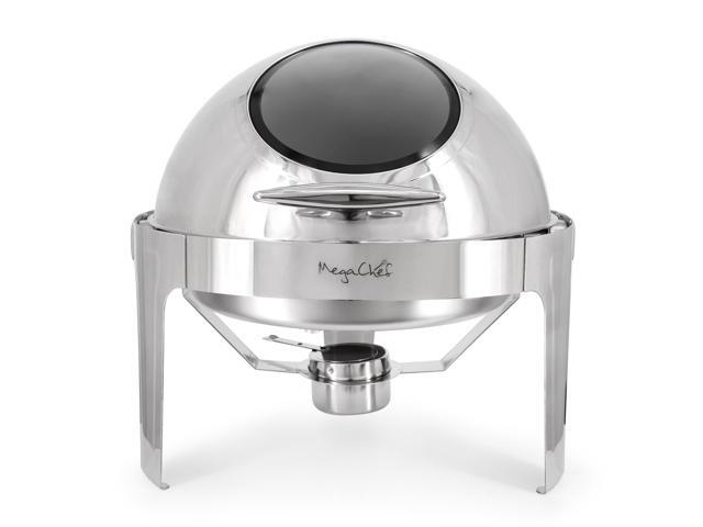 MegaChef 6.3 Quart Round Stainless Steel Dome Roll Top Professional Chafing Dish/Food Warmer/Buffet Server Serving Dish with Windown