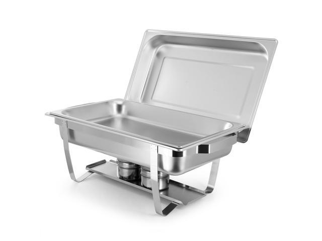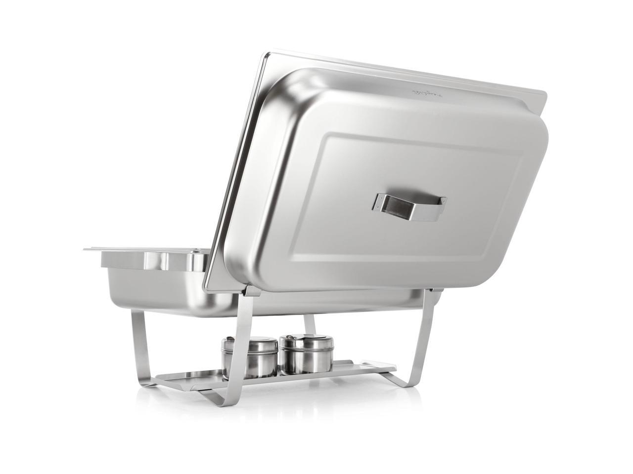 - Set: four chafing dishes with stands and eight fuel holders