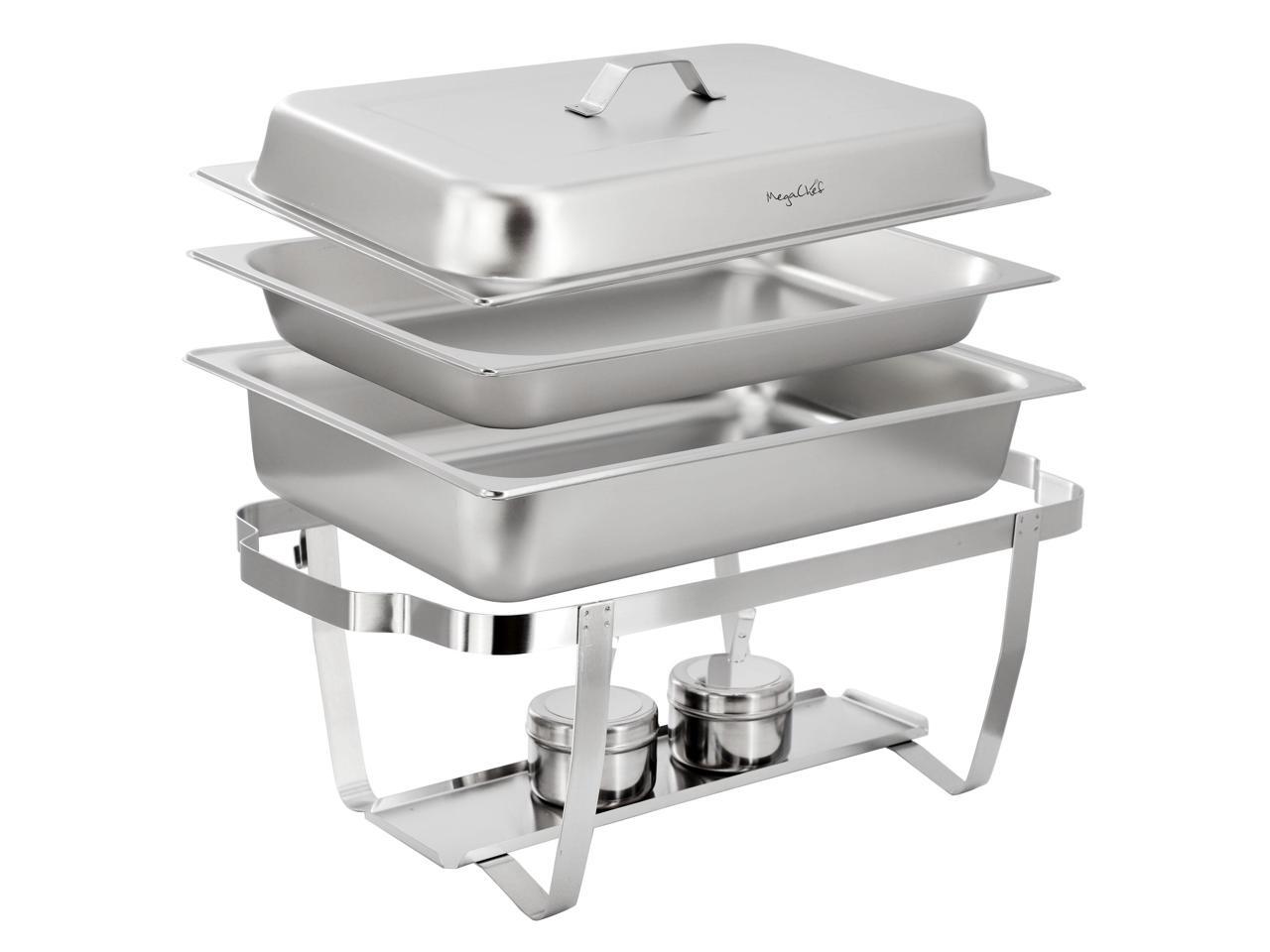 MegaChef 9.5 Quart Stackable Stainless Steel Professional Chafing Dish/Food Warmer/Buffet Server Serving Trays, Set of 4