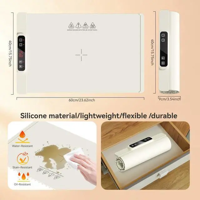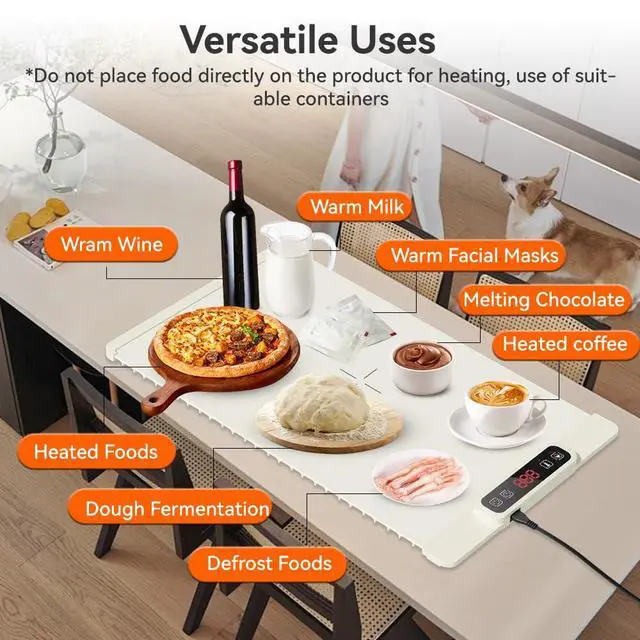 Multi-purpose Food Warming Mat: This warming mat is versatile, it can be used to quickly heat up food, promote dough fermentation, defrost food, heat baby milk powder and so on. Quick heating and food warming is a big problem for family gatherings and festivals, using it can easily solve, keep the dishes always in the best taste