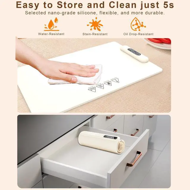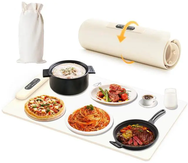 Food Warming Mat, Upgrade High-tech Graphene Heating Film, 10s Fast Full Surface Electric Warming Tray with 3 Level Adjustable Temperature and 3 Hours Timer, Roll Up Food Warmers for Parties Home Travel