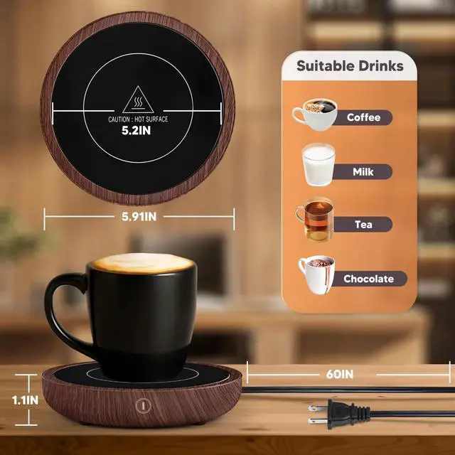 3-Temperature Settings: 36w coffee warmer desk with temperature control, you can adjust the temperature with the touch button to keep the coffee temperature at 120/150/180.