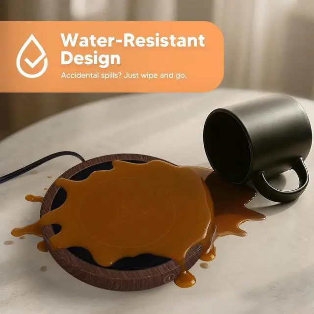 Waterproof DesignThe coffee warmer is made of tempered glass without security concern for splashing or spilling water on the heating plate by accident and makes cleaning a breeze.