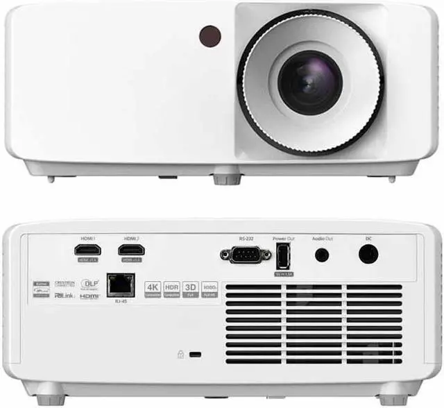 This full-featured projector has built-in speakers and its laser technology provides up to 30, 000 hours of maintenance-free laser light. Focused on ultimate control and convenience, this projector features RS232 connectivity for monitoring and control, a short throw lens, and can be mounted less than half a meter from any wall.