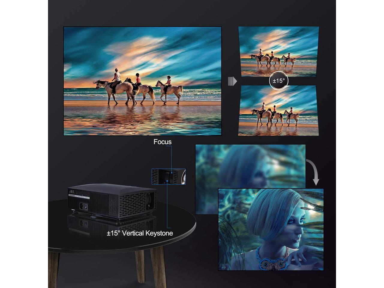 - Easily adjust a good image with ±15° Vertical Keystone Correction, 25x ZOOM in/out, 360° image flip and lens focus, give you Theater-level Watching Experience.