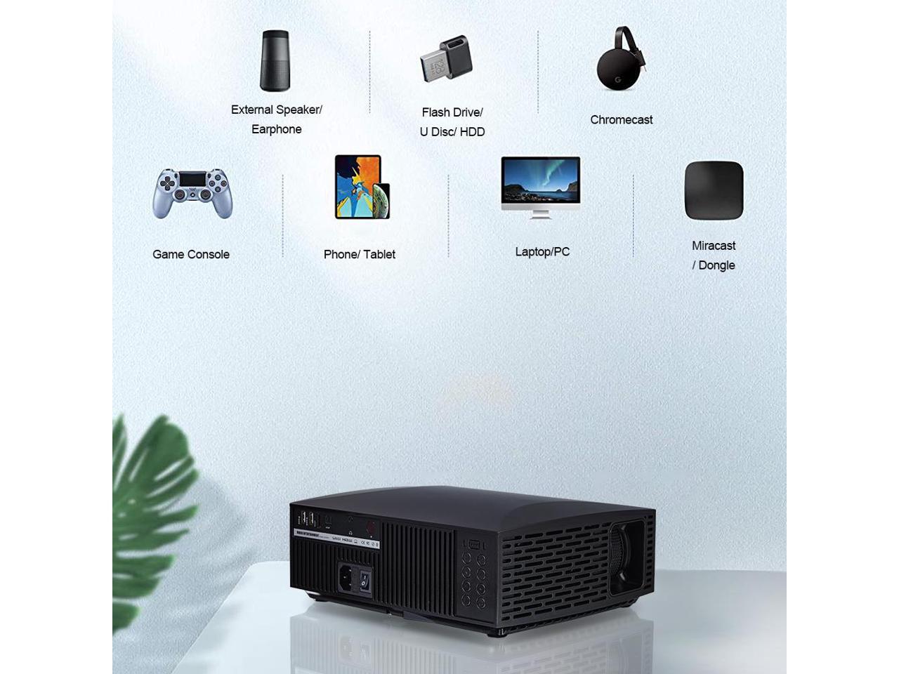 - This digital projector equipped with USB*2, HDMI, SPDIF, 3.5mm Earphone port. Compatible with your most devices, plug and play.