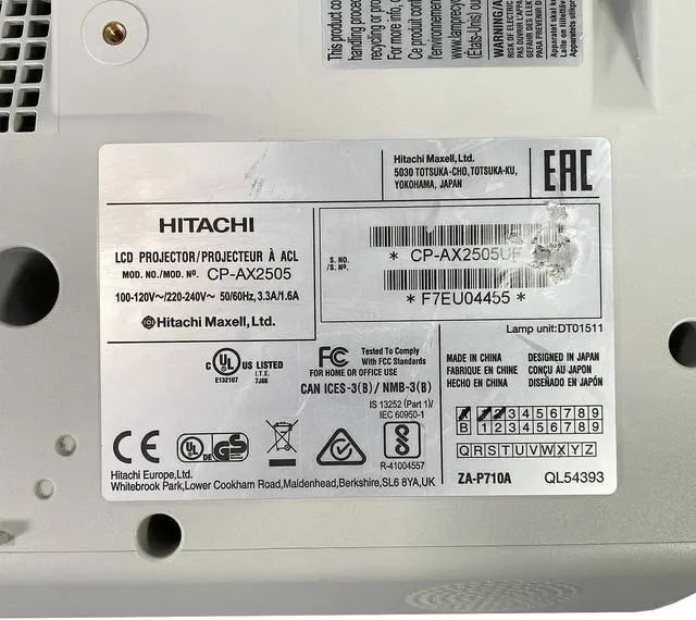 Hitachi CP-AX2505 3LCD Projector 2700 ANSI Ultra Short Throw HDMI w/Accessories