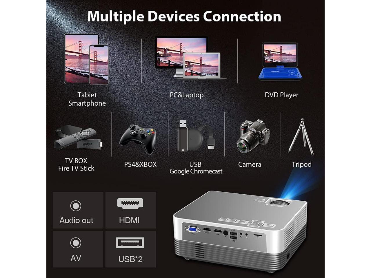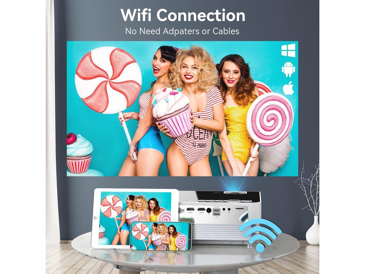 2.[Convenient WiFi Connection&Zoom Function]--With upgraded WiFi connection function,Q6 mini WiFi projector makes the connection bewteen projector and your iOS/Android devices more easier. No need to buy extra cables or adapters, Q6 wifi projector can mirror movies, videos, apps, games, photos on your iOS/Android devices to big screen anytime.
