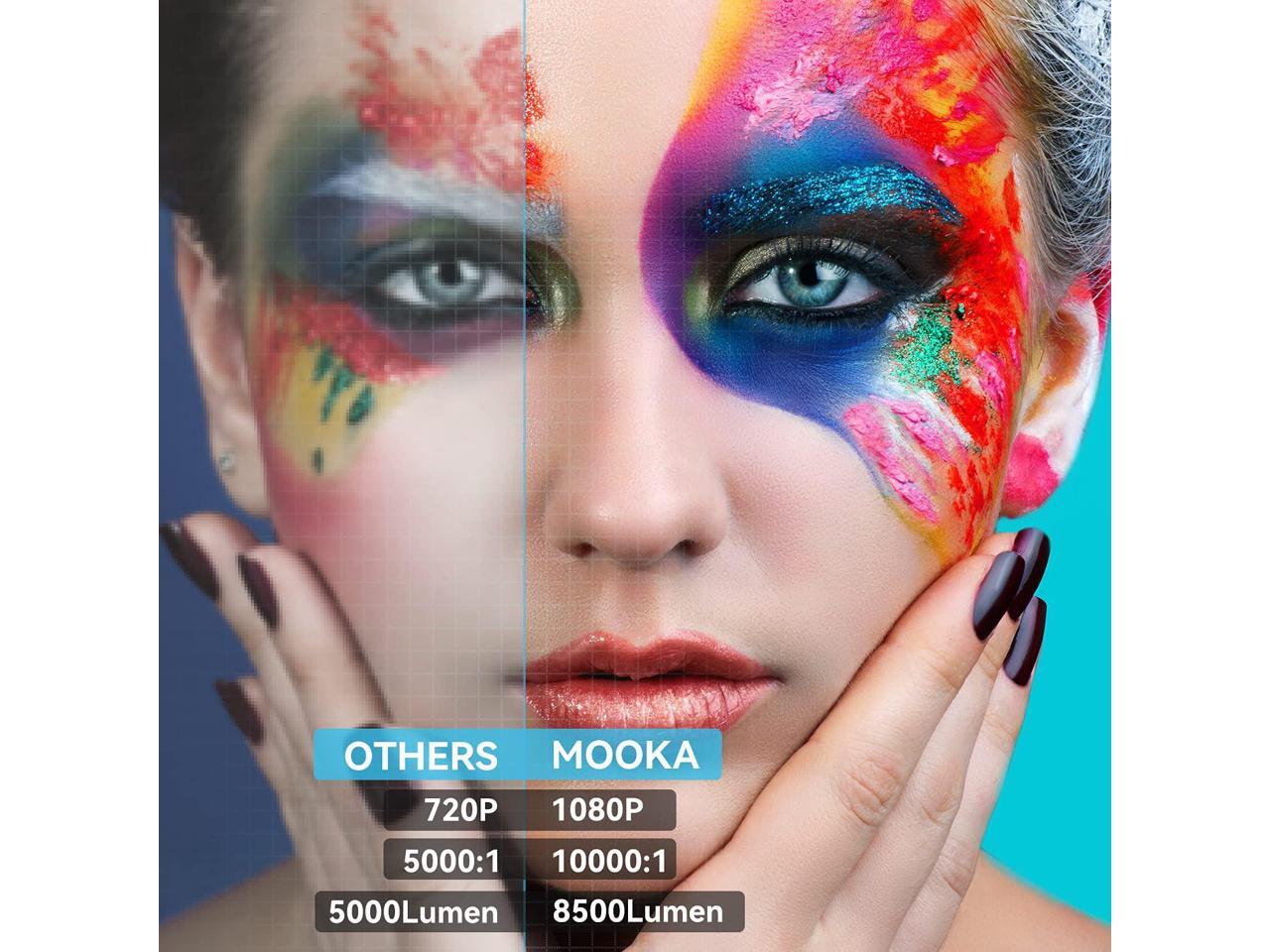 1.[Native 1080P& 8500L&Extra Carry Bag]--Equipped with advanced color technology, Q6 is native 1920*1080P projector with outstanding 8500 lumens brightness,up to 10000:1 contrast, which is four times higher than 720P projectors,delivering superior clearer and sharper visual feast for you.