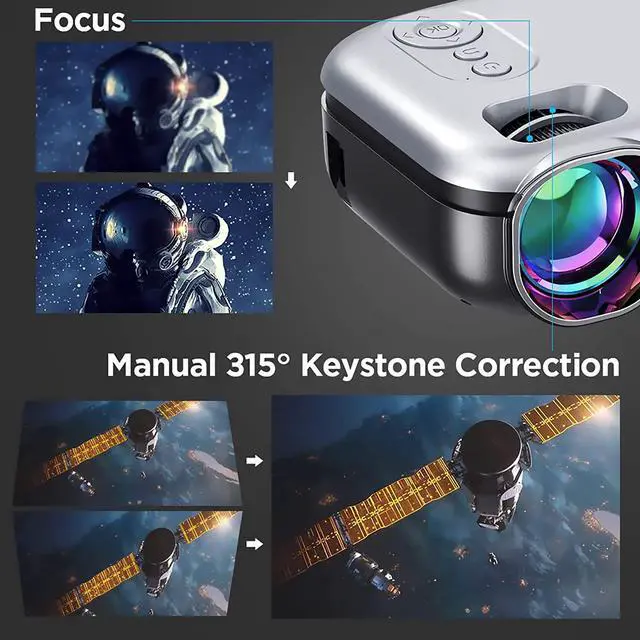 Available projection screen setups: Rear, Front, Ceiling, and Wall. Mini projector can flip the image, supports front projection and back projection. Experience the versatility of home theater installation by mounting it on a ceiling.