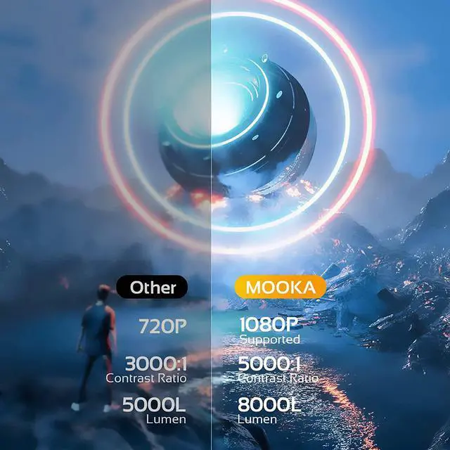 Adopting the most advanced German LED lamp technology, Mooka FAMILY portable WiFi Projector has an amazing +30% brightness gain and a native resolution of 1280x720.z