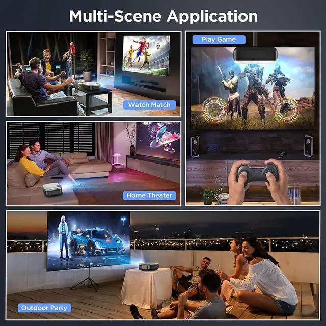 players, iPad, iPhone, and Android Smartphones. Use it for different purposes: Home Theater/Cinema, Video Gaming, Party, Outdoor Entertainment.