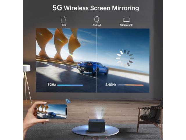 - 5G WIFI and Newest 5.3 Bluetooth Technology: Seamlessly connect your devices with our WiFi projector. Utilizing the latest 2.4G/5G dual WiFi and MirrorScreen technology, effortlessly mirror the screens of Windows 10, Android, or iPhone to this wireless projector, ensuring faster and more stable connection speeds