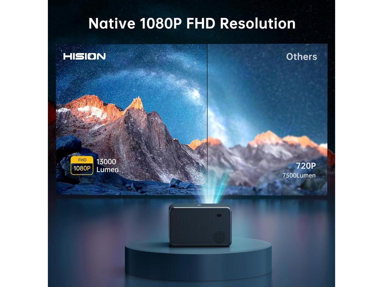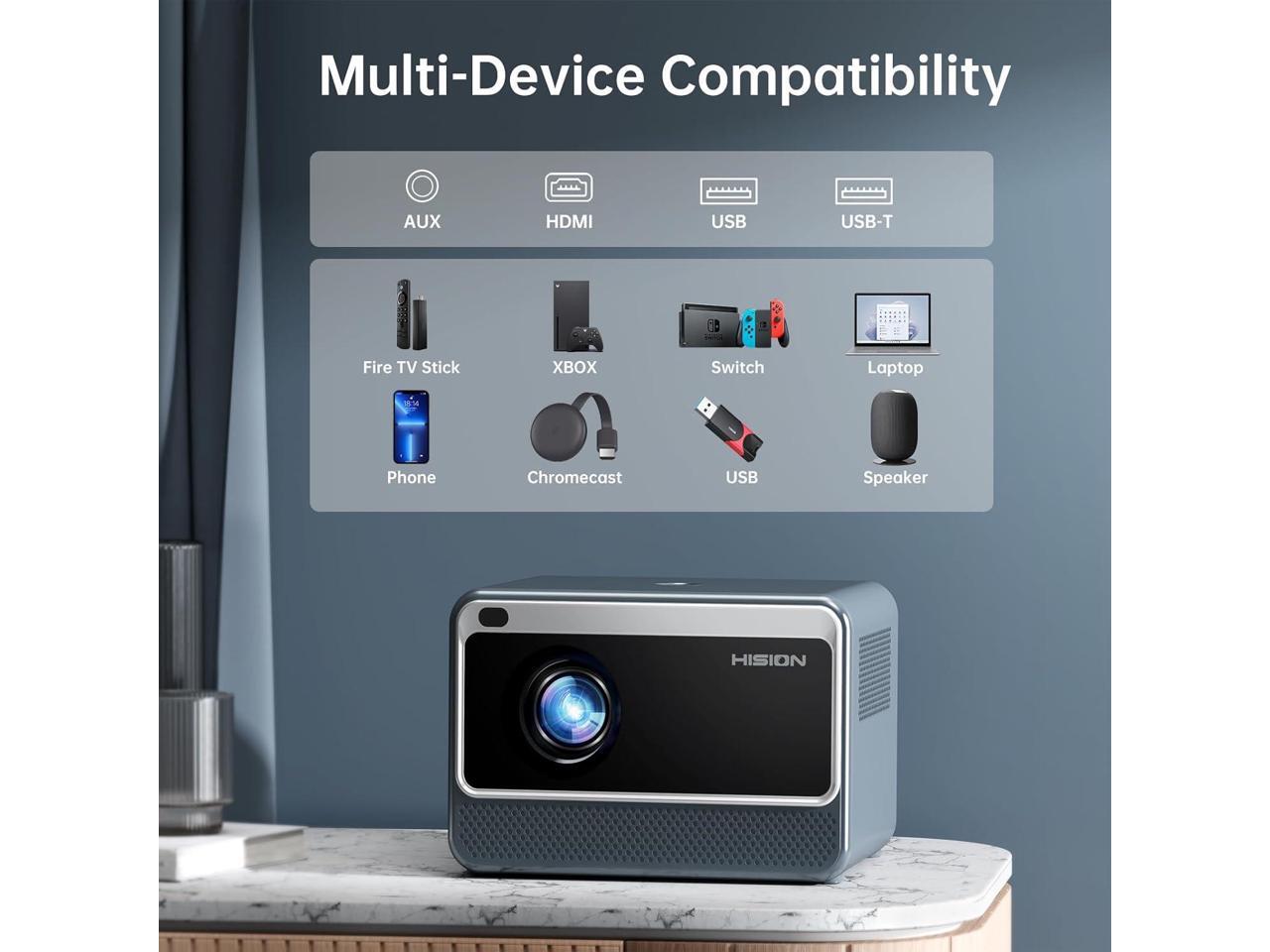 - Native 1080P Resolution with 4K Support: Get acquainted with the newest HISION projector with WiFi and Bluetooth! Featuring a crystal-clear 1080P resolution and support for 4K devices, this mini projector boasts an impressive 13000 lumens brightness and a high contrast ratio of 10000:1