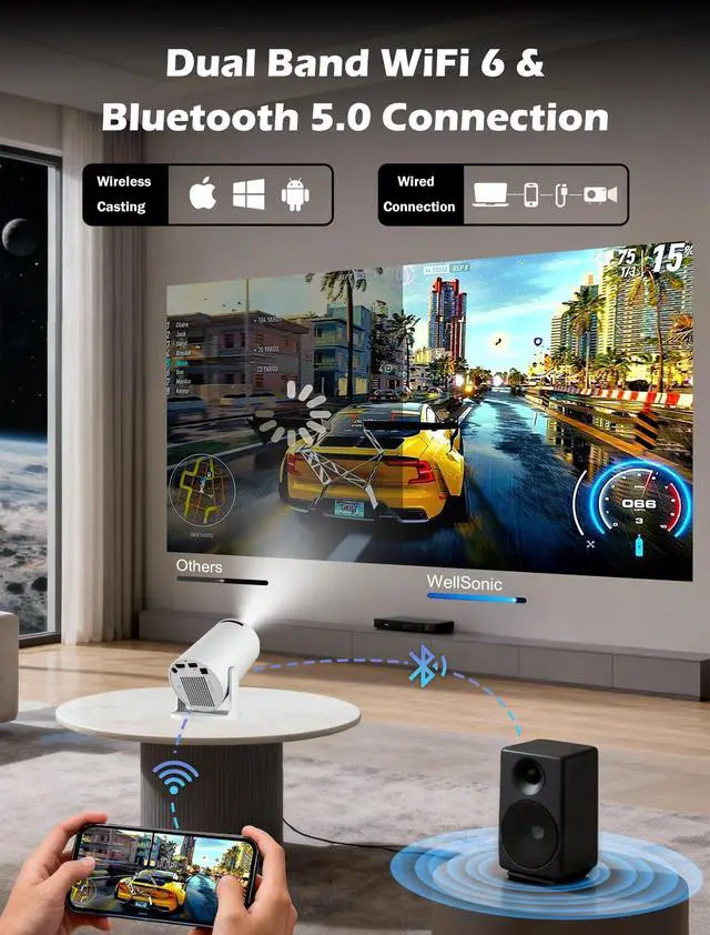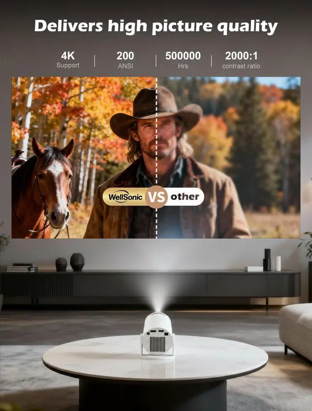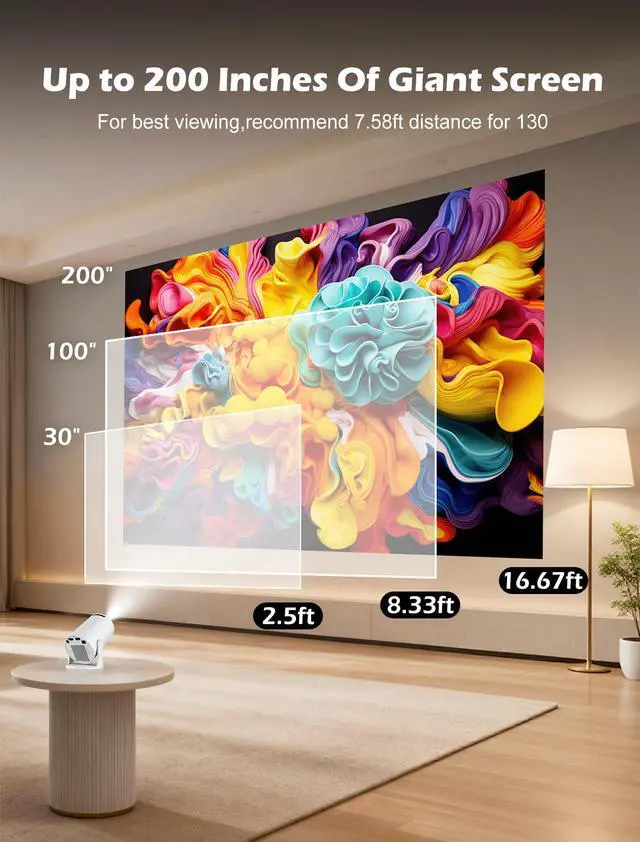 The projection size can be flexibly switched between 30"-200", so you can switch from a compact bedroom to a spacious living room with just one click.
