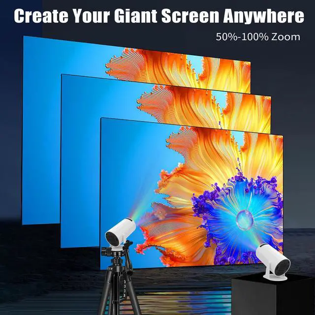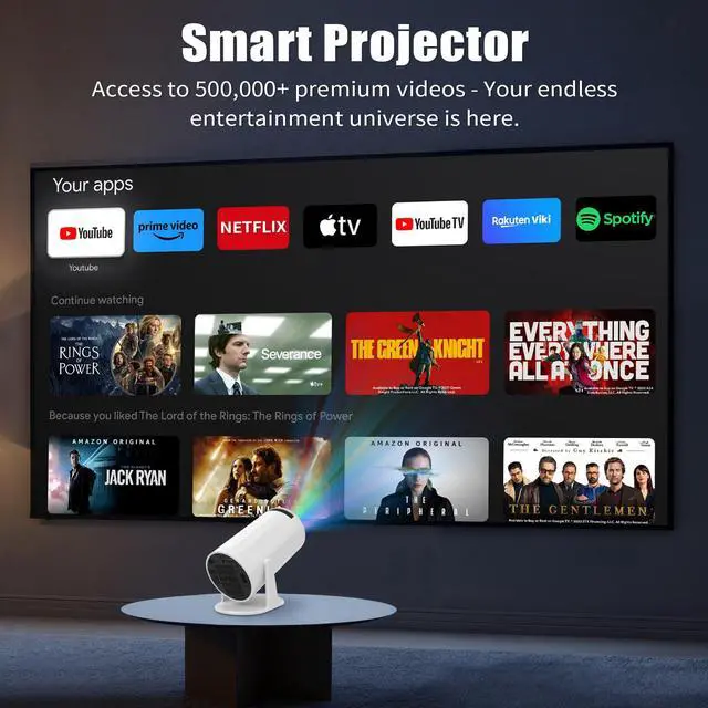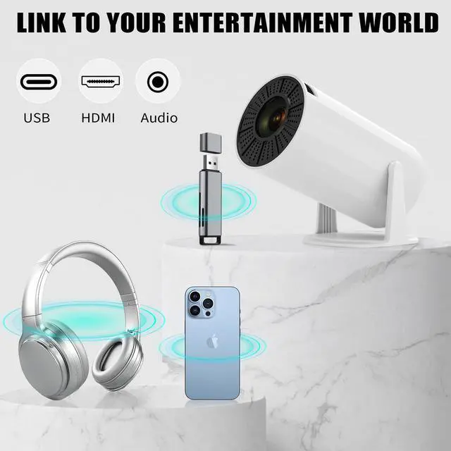 Mini Projector: Easy to use anywhere. Watch movies from your apps on a big, clear screen. The picture adjusts itself, and you can connect your speakers without cables.