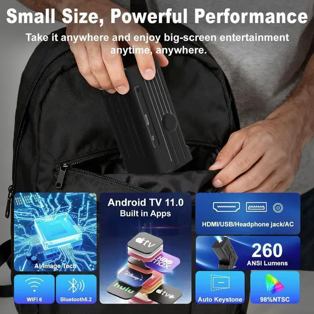 ![Alt view image 6 of 7 - [Smart Projector with Apps] 4K Supported Mini Projector with Wifi and Bluetooth, XENPONAD Movie Projector for Bedroom Celling Camping & Outdoor Use, Portable Projector with Speaker, Auto Keystone](https://c1.neweggimages.com/productimage/nb640/C57ZD2603090PW5VF99.jpg)