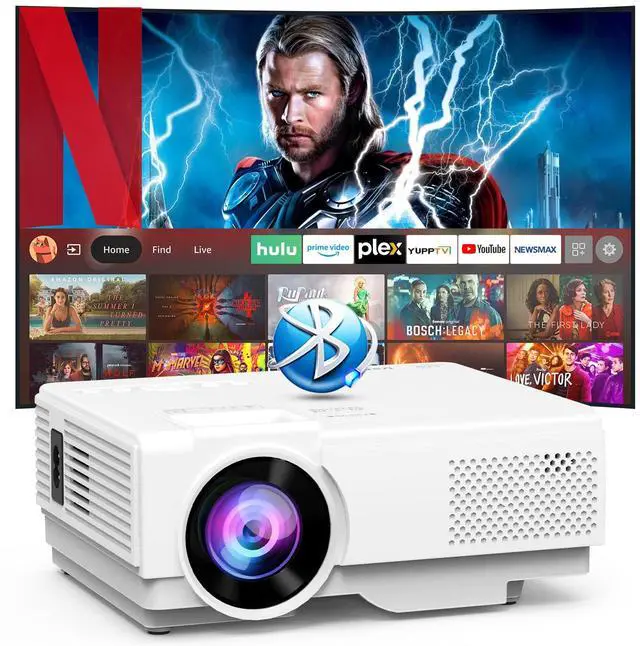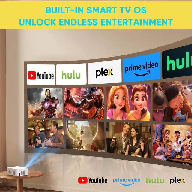 SMART PROJECTOR WITH SMART TV OS & WIFI6: This portable smart projector is equipped with Android TV OS. It is convenient and free to download a number of apps, including but not limited to Primevideo, Youtube, Hulu, Disny+ etc. The built-in open browser caters to your personalized entertainment needs, providing the latest features while enhancing the app's security and stability. WiFi6 enables fast and smooth synchronization with your devices to get a huge display screen with lower latency.