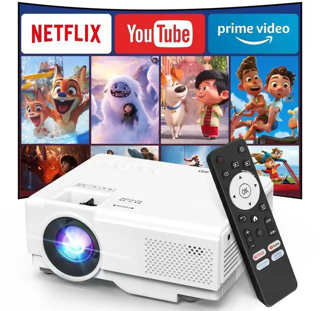 Smart Projector with WiFi and Bluetooth, Mini Movie Projector with Apps Built-in, 1080P Outdoor Projector for Phone/PC/HDMI/USB, Two-way Bluetooth, 50% Zoom