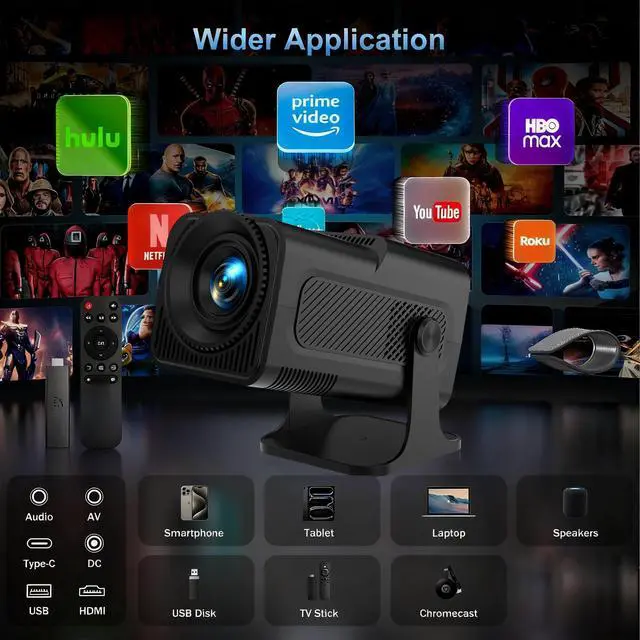 This projector only needs to be plugged in and turned on. After turning it on, connect to Wi-Fi and it's ready to use. It has built-in applications such as YouTube and Hulu. You can start watching right away without any complicated operations