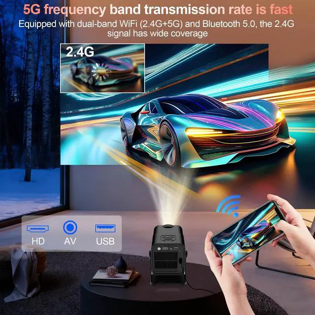 It can be connected to a smart phone and is compatible with both iPhone and Android phones, allowing you to mirror your phone's screen onto the projector