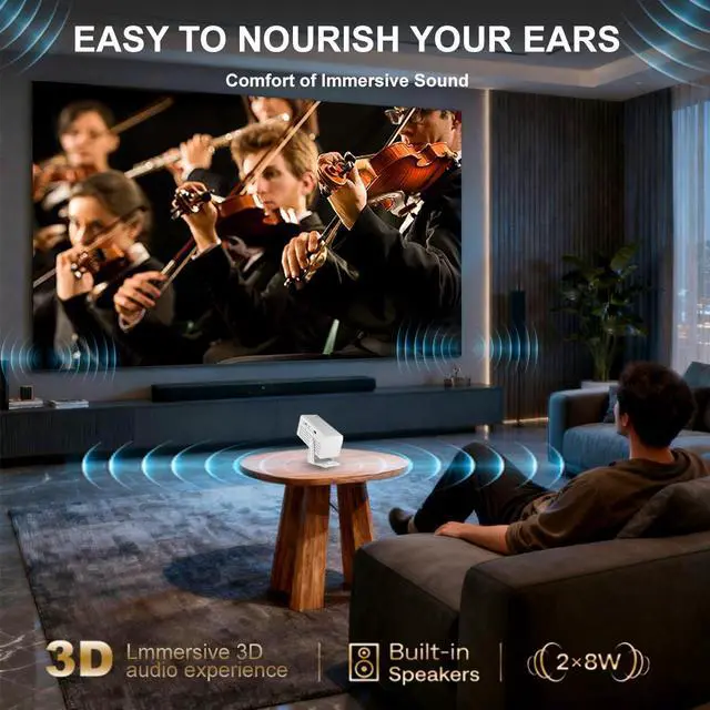 Versatility meets convenience with multiple connectivity options. Wirelessly cast from your smartphone or tablet via Wi-Fi or Bluetooth, or use the HDMI, USB, and audio ports to connect laptops, gaming consoles, and external drives. This projector serves as the central hub for all your devices.