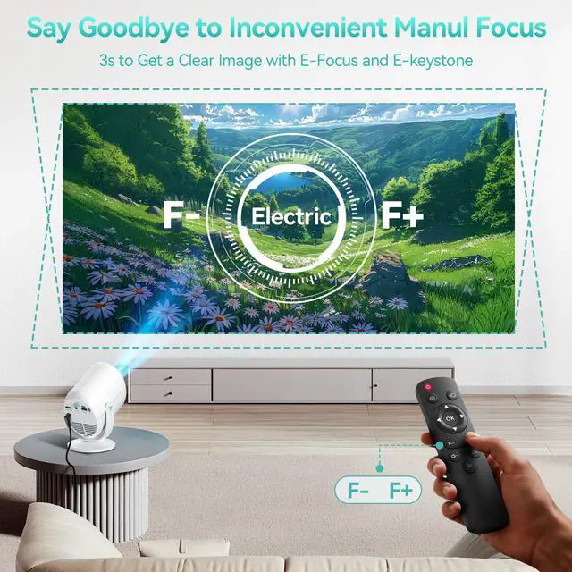 270° Rotating Mount + Motorised Keystone + Electric FocusThe Nasin VF211WF mini projector has a 270° rotating mount, enabling easy projection at any angleeven ceiling projections for bedrooms or home theaters. With motorised keystone correction (±45° vertical) and electric focus, no manual twisting is needed: one click gets distortion-free, sharp images. This Nasin portable projector ensures hassle-free setup for movie nights, small presentations, or outdoor viewing.