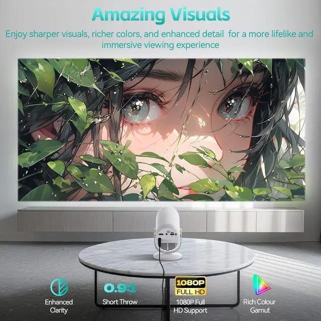 Up to 200" Giant Screen with Short Throw TechThe Nasin VF211WF Native 1920*1800 resolution with 4K support projector (0.9:1 throw ratio) turns any space cinematic, projecting up to 200 inches. It offers 4:3/16:9 aspect ratiosideal for outdoor projector setups or as a home theater projector. With short throw, 1,5000 Luments this projector for bedroom delivers large images from short distances, perfect for small rooms/limited spaces, letting you enjoy big-screen fun without needing much setup area.
