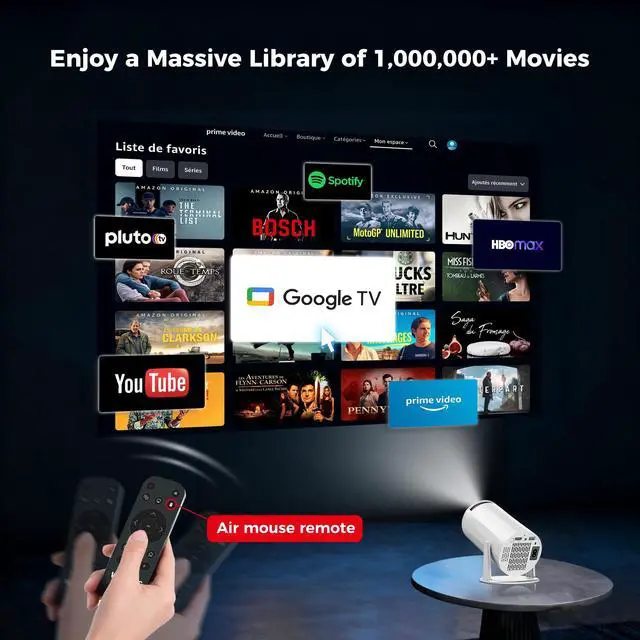 Smart projector with built-in Apps: This mini smart projector is powered by Android 11 and a high-performance H713 chip, giving you direct access to Prime Video, YouTube, and other popular platformsno extra streaming device required. Enjoy over 1,000,000 movies and TV shows anytime, anywhere