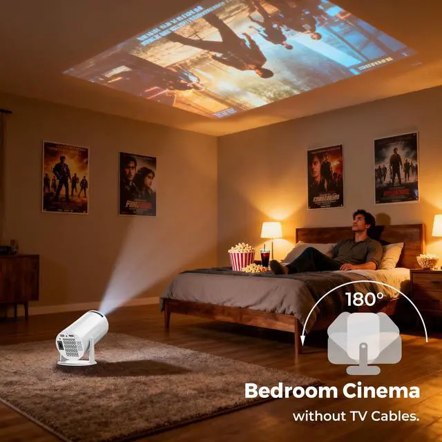 Perfect picture in seconds: This home projector get the ideal view every time with auto keystone correction to instantly straighten the image, manual focus for razor-sharp clarity, and a 180° rotating design that lets you project onto walls, ceilings, or any you want surface