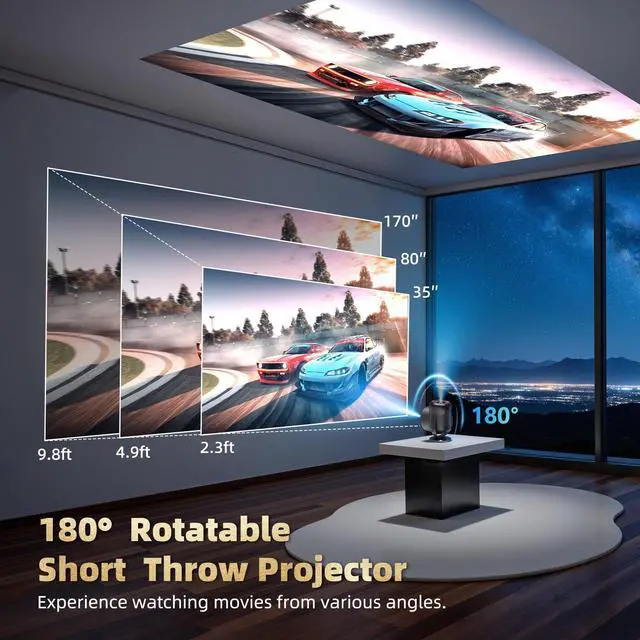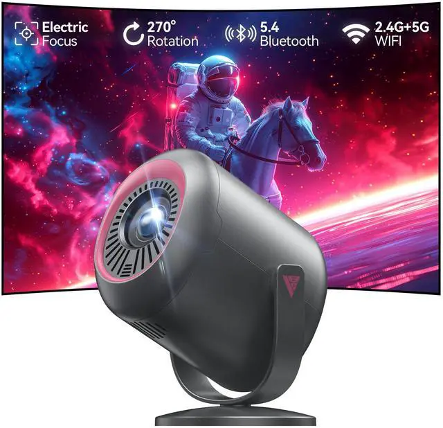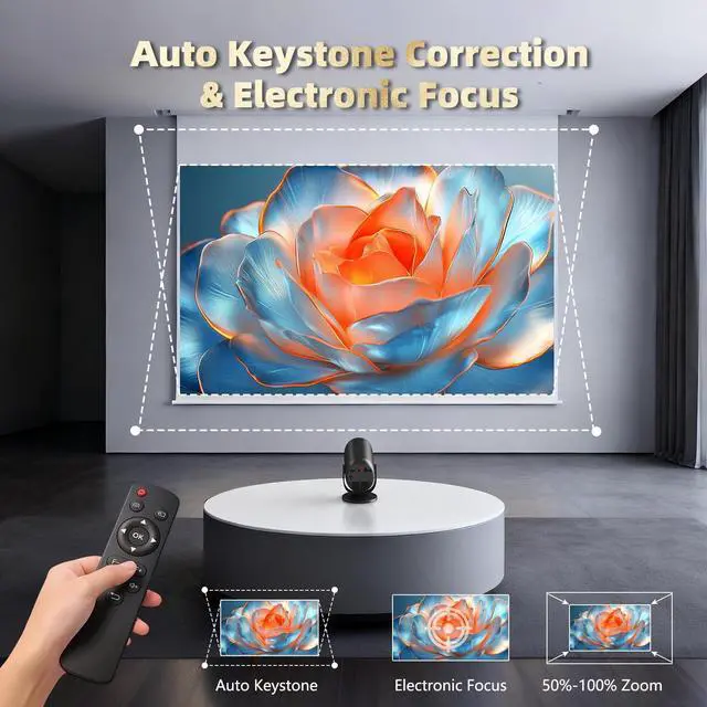 360° Freedom · 3-Second HD Setup The mini projector features a 270° rotating mountpoint it at ceilings, living room walls, or outdoor tents, project anywhere you want. Pair it with auto keystone correction (±45° vertical) + electric focus, and nail distortion-free, sharp images with one click. No manual fiddlingperfect for movie nights, impromptu work presentations, or camping viewings. Even first-timers can go from setup to screening in 3 seconds. (Note: 270° rotation covers most angle needs, simplified for clarity.)