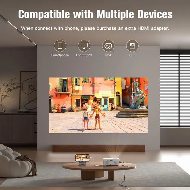 Get 35 to 200 inches projection size at will with 3.6ft to 18.5ft projection distance.