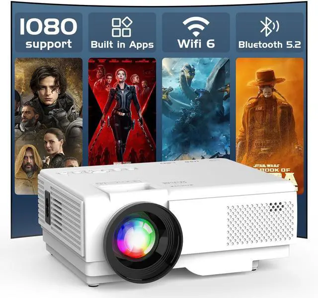 ![Alt view image 6 of 7 - [Built-in Apps] Mini Projector with WiFi and Bluetooth, Portable Movie Projector, Compatible with Smartphone/TV Stick/Laptop/HDMI/USB, For Home Theater, Outdoor Movie, Gaming, Camping](https://c1.neweggimages.com/productimage/nb640/C43WD2604240EEHH87D.jpg)