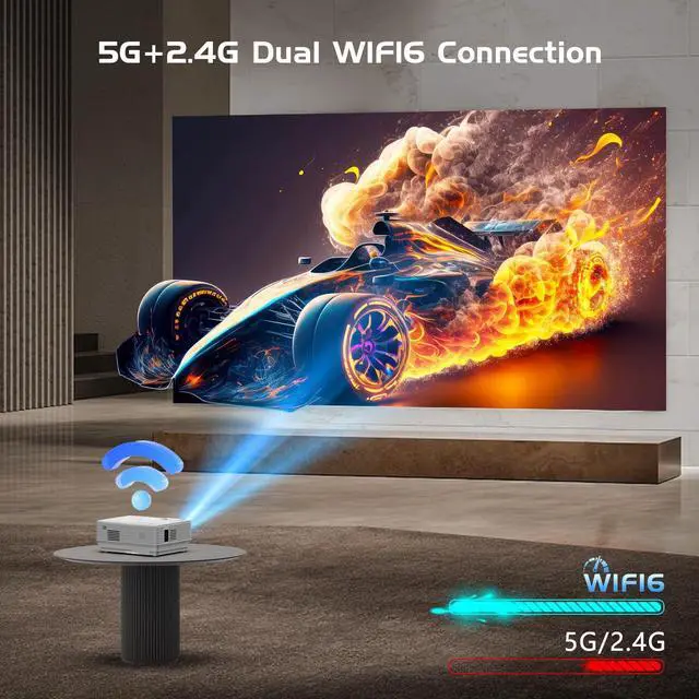 - Blazing-Fast WiFi 6 Connectivity: Stream 4K content, play online games, and browse without buffering thanks to the latest WiFi 6 technology. Offering faster speeds, lower latency, and improved network stability, this WiFi 6 projector ensures smooth performance even in crowded network environments. Say goodbye to lag and interruptions—your entertainment stays seamless from start to finish.