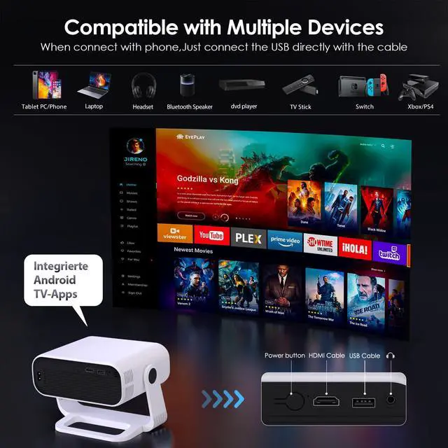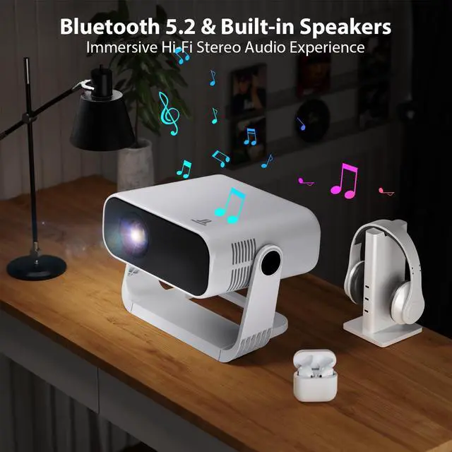 Android 14 Portable Mini Projector 10000+ Built-in Apps, No TV Stick Needed: Powered by Android 14, this portable projector comes with 10000+ built-in apps and gives you instant access to over 1 million FHD videos. Download apps directly, stream smoothly, and turn any room into a private cinemano extra TV stick required. Perfect for movies, sports, fitness, gaming, and kids cartoons, its designed to fit your daily entertainment needs with simple operation and strong versatility, great for bedroom and outdoor use.