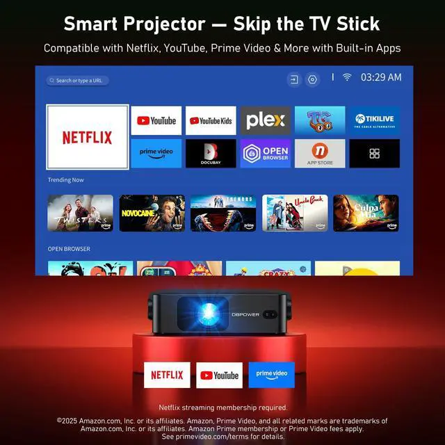 ![Alt view image 5 of 7 - [Ultra-Slim 1.97"| Auto Focus | Built-in Apps | 360° Stand] Smart Mini Projector with WiFi and Bluetooth, Compatible with Netflix, Youtube, Prime Video, DBPOWER N5 Portable Movie Projector for Bedroom](https://c1.neweggimages.com/productimage/nb640/C688D2604300QKH7FBF.jpg)