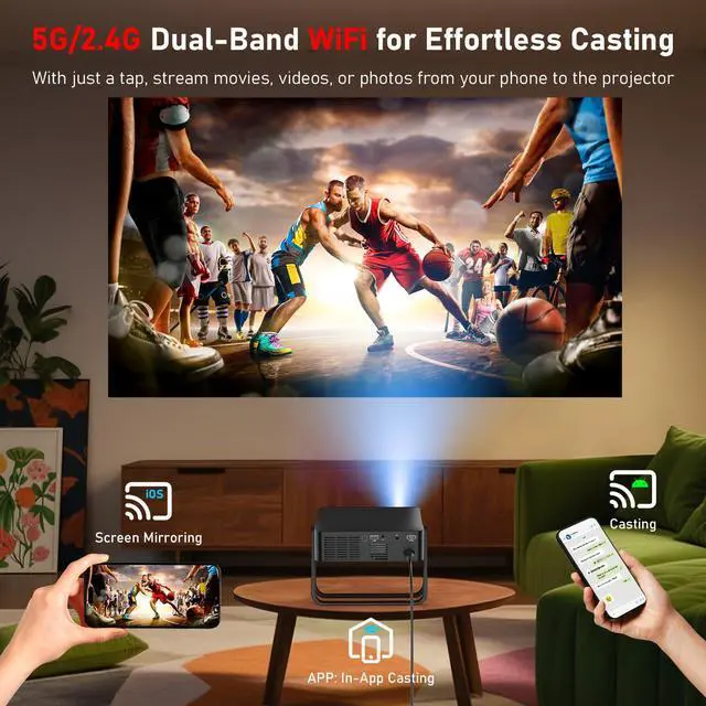 ![Alt view image 4 of 7 - [Ultra-Slim 1.97"| Auto Focus | Built-in Apps | 360° Stand] Smart Mini Projector with WiFi and Bluetooth, Compatible with Netflix, Youtube, Prime Video, DBPOWER N5 Portable Movie Projector for Bedroom](https://c1.neweggimages.com/productimage/nb640/C688D2604300QKH49CB.jpg)