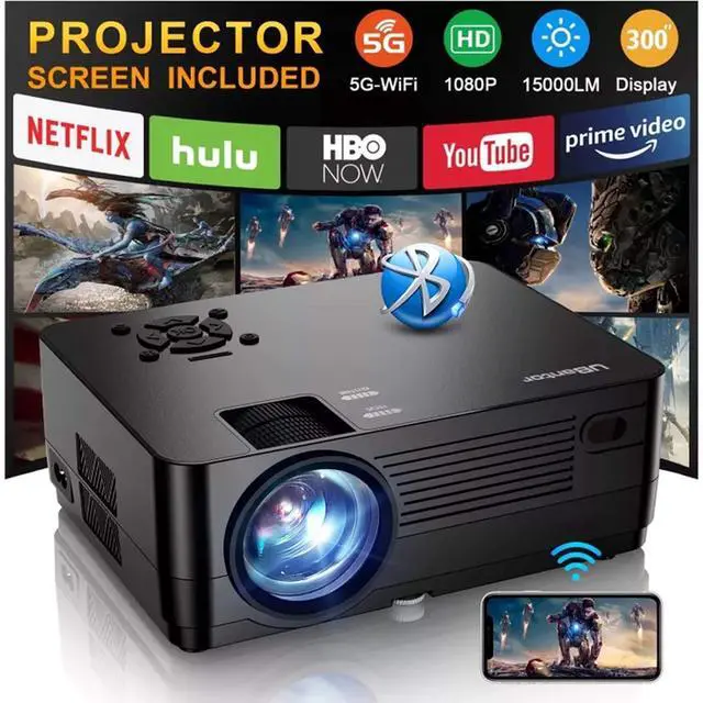 Enjoy cinematic experiences at home with the UBantor 150" Class FHD (1080p) LCD Projector. This Full HD projector delivers crisp and vibrant visuals on a massive 150-inch diagonal screen, making it perfect for movies, gaming, and presentations. Featuring a 16:9 widescreen format and 9800 Lumens brightness, it produces sharp images with excellent clarity. The built-in 2CH stereo speakers provide quality sound, and multiple connectivity options including HDMI, USB, Micro SD, Mini VGA, Composite, and a headphone jack make it compatible with a wide range of devices. Compact and easy to set up, this projector is ideal for home theaters, classrooms, and entertainment events.