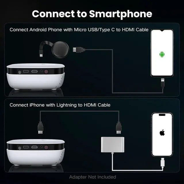 Immersive 200 Large Screen Viewing Get ready for a cinema-sized experience! Perfect for home theater lovers, gamers, or anyone who enjoys a cinematic experience at home or outdoors. This phone projector offers fantastic value. It works flawlessly and is a great addition to both outdoor movie nights and indoor gaming sessions