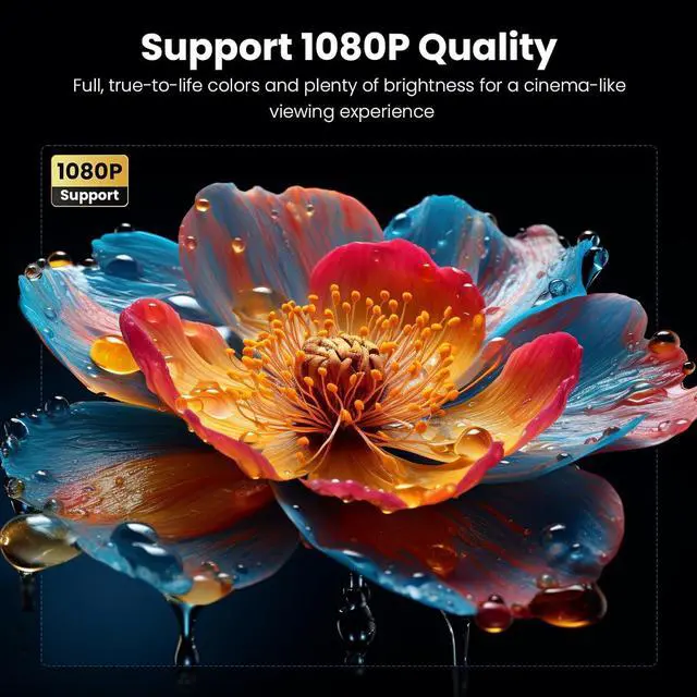 Ultra-Portable Mini Projector - Measuring only 6.41 x 5.11 x 2.67 inches and weighing just 1.1 lbs, this outdoor projector is perfect for users who value portability. The proyectors compact form makes it easy to carry from room to room, tuck into your backpack for travel, or set up quickly for movie nights without taking up much space in your living area