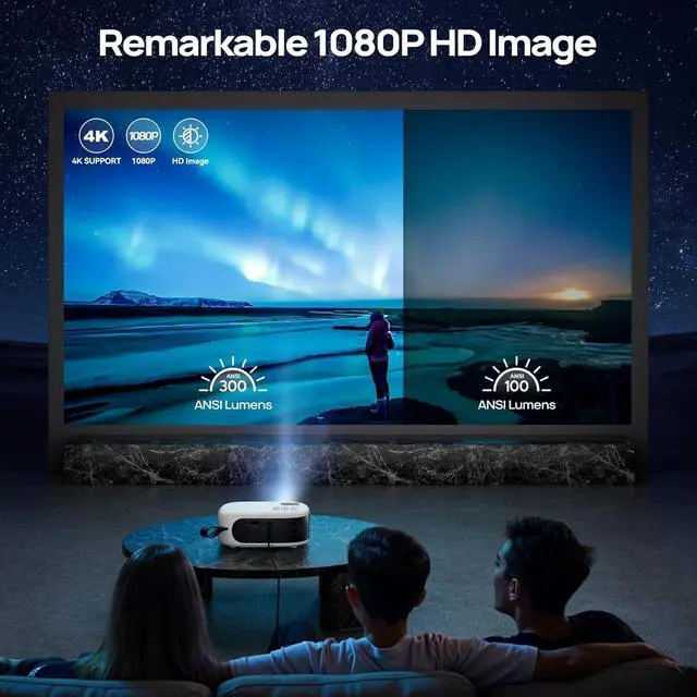 Immersive 1080P Movie Projector with Enhanced Bluetooth Audio: This small projector delivers sharp 1080P-supported visuals and features a built-in upgraded speaker. As a versatile bluetooth projector, it allows you to wirelessly connect external speakers, transforming any room into a private theater for the perfect movie projector experience.