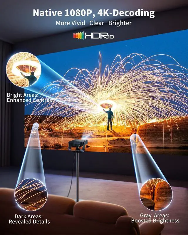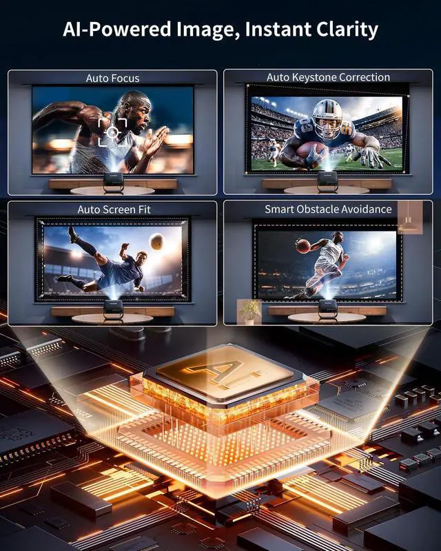 | Special Features | After-sales Support: [email protected] 2026 Newest Smart Operating System: Compatible with Netflix/Prime video/hulu/apple tv/MAX and Live channles 330° Rotating Stand and Ultra-thin Body Advanced Features: 1.5GB DDR RAM, HDR10, Smart Phone Remote, Two-way Bluetooth, Ultra-fast WiFi 6, HDMI ARC/CEC, Lower Noise30dB; Input:100-240V~,50/60Hz 1080P Native with 4K Decord, Auto Focus, Auto Keystone Correction, Smart Obstacle Avoidance, Screen Alignment, and 50100% Zoom Out |