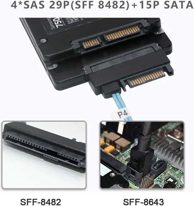 enables you to connect e. g. a controller with mini SAS 36pin connector (SFF 8087) to 4 SAS (SFF 8482) HDD.